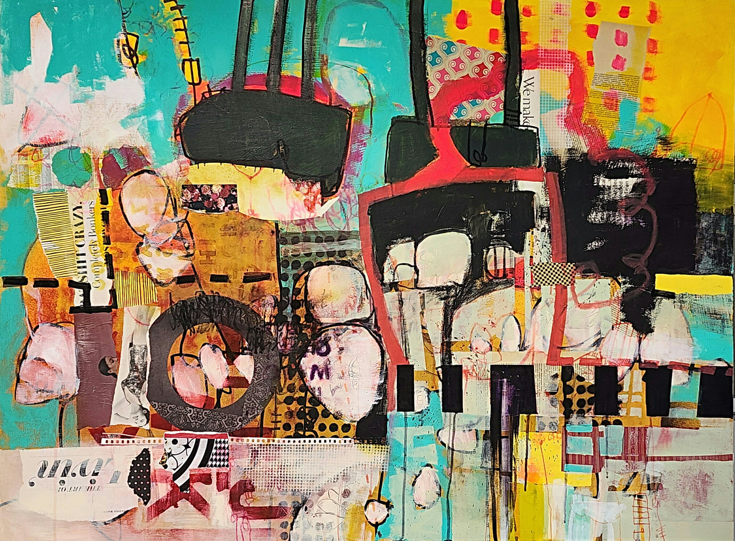 Julie A. Bell is a contemporary mixed media artist from Windsor, Ontario. Julie works primarily in mixed media collage, applied to canvas or glass, creating both wall art and decorative and functional glass art. Her unique and eclectic imagery is rooted in the exploration of social concepts, scientific theory and natural and man-made environments. Using found materials, handmade paper, acrylics and inks, Julie carefully constructs compositions that are full of energetic colour and layered meaning.