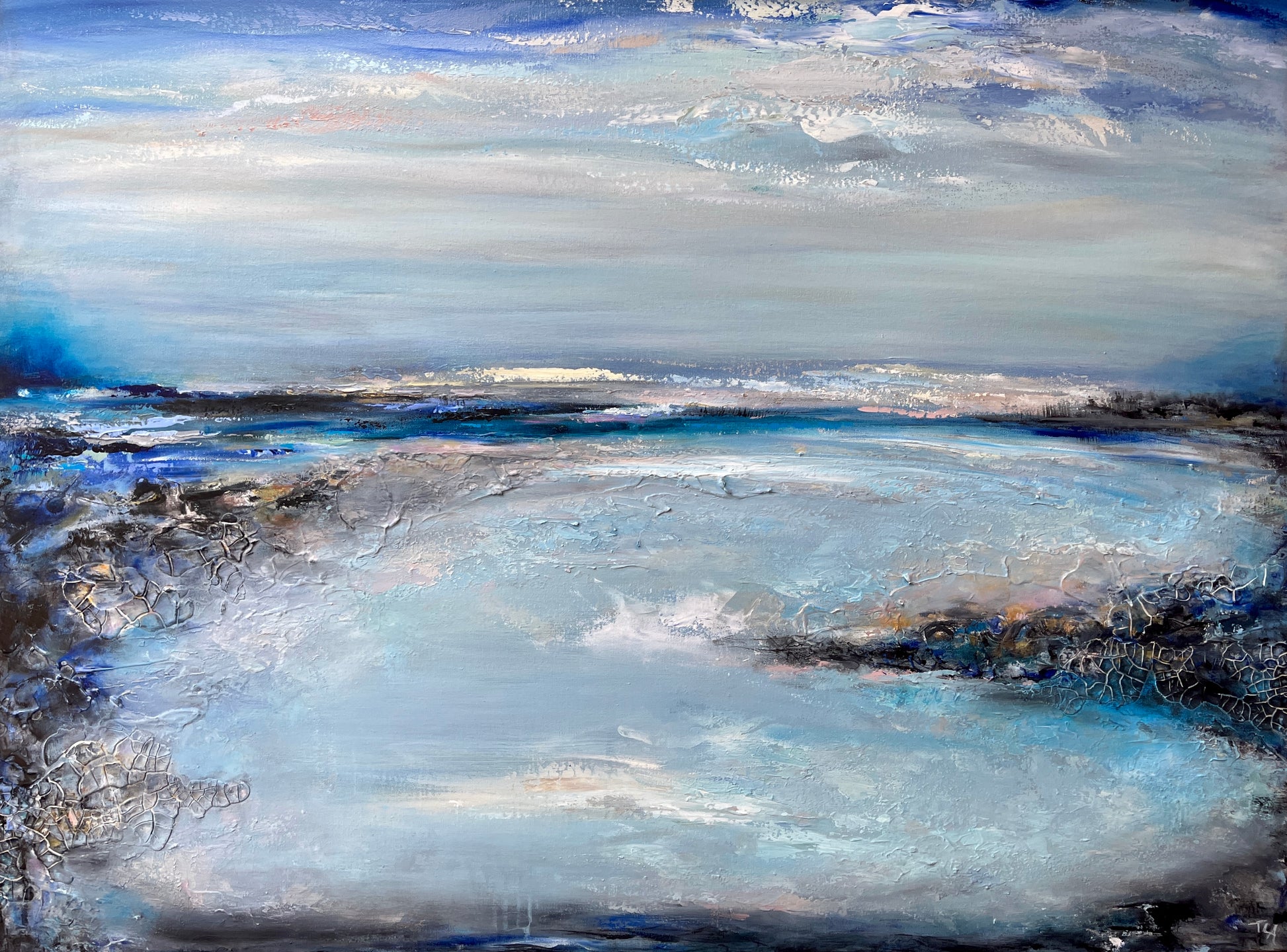 Acrylic and mixed media on canvas, 40"h x 30"w