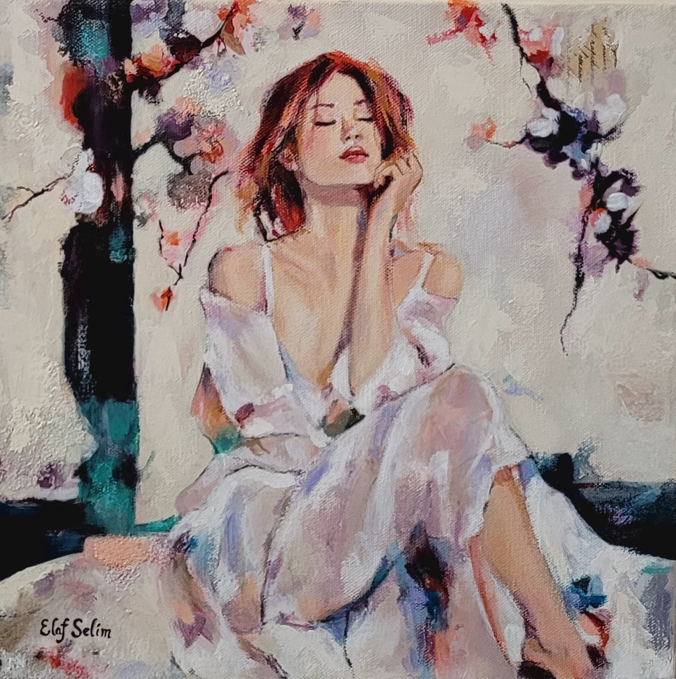 Oil and mixed media on canvas, 12"h x 12"w by Elaf Salim