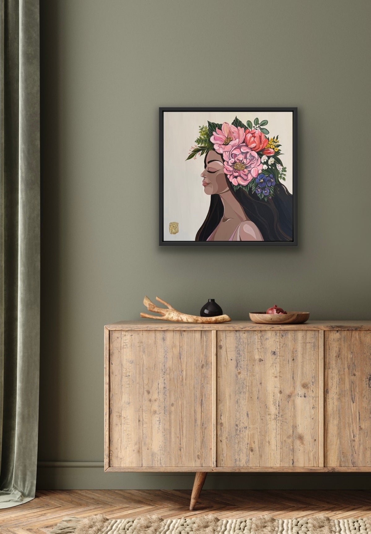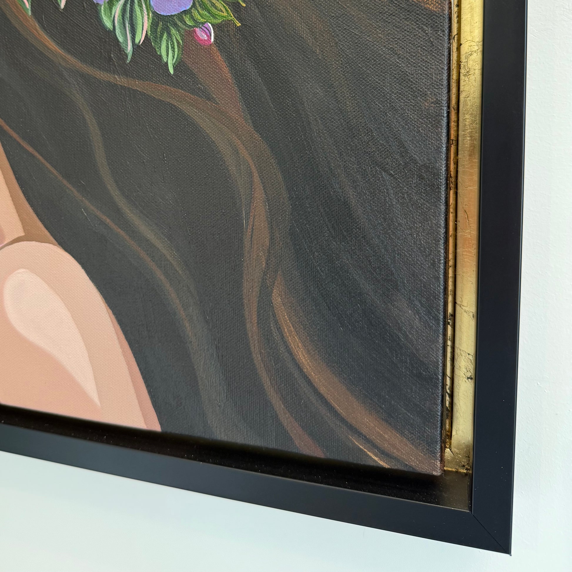 Comes framed in a black float frame with gold leaf inlay.
